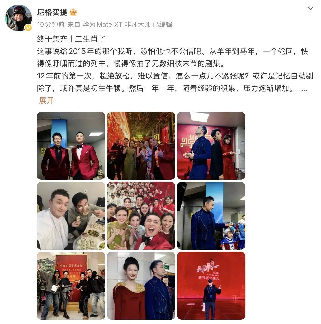 【尼格买提长文谈主持12届春晚:终于集齐十二生肖了 】