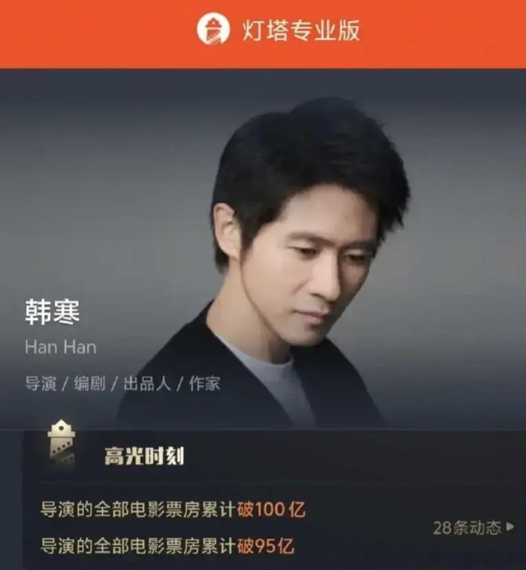 【韩寒导演电影累计票房已破100亿!《飞驰人生3》已破26亿 】